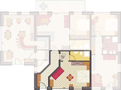Dieser ruhige Schlafraum mit großer Terrasse (im Parterre) bietet Platz für 2 bis 3 Personen.